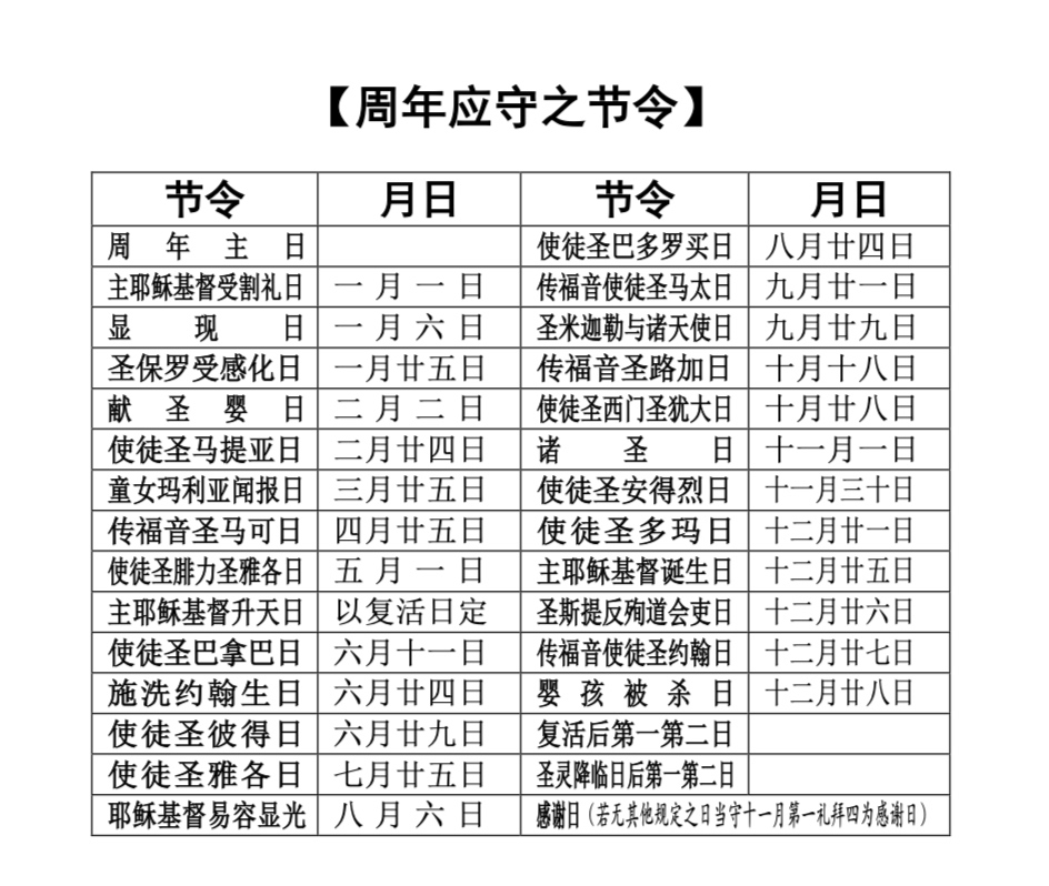 - 三一主日:此主日纪念上帝神圣三一的彰显。